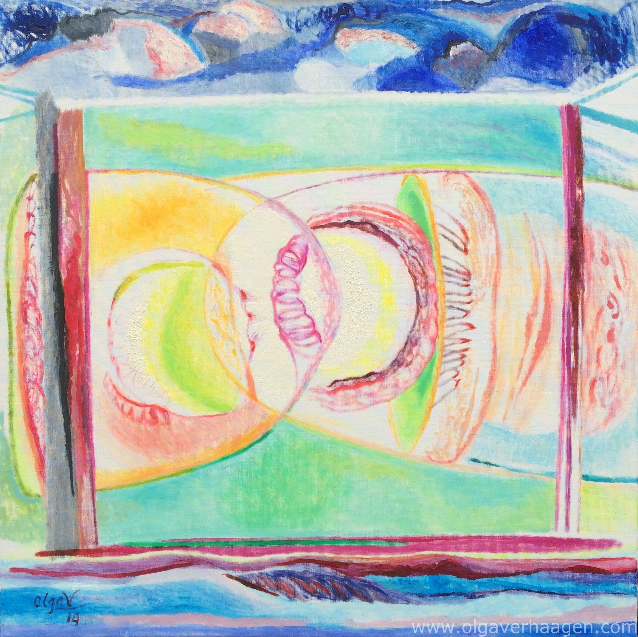Afmeting schilderij: 90 x 90 cm.