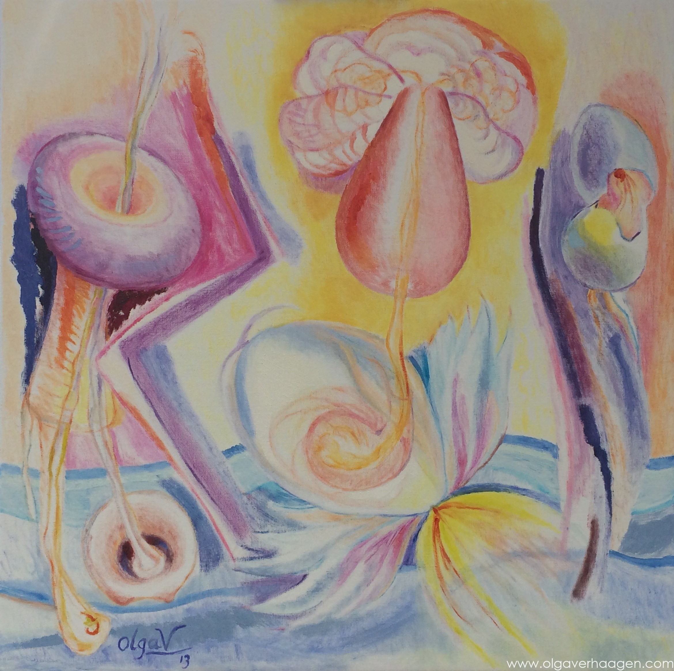 Afmeting schilderij: 80 x 80 cm.