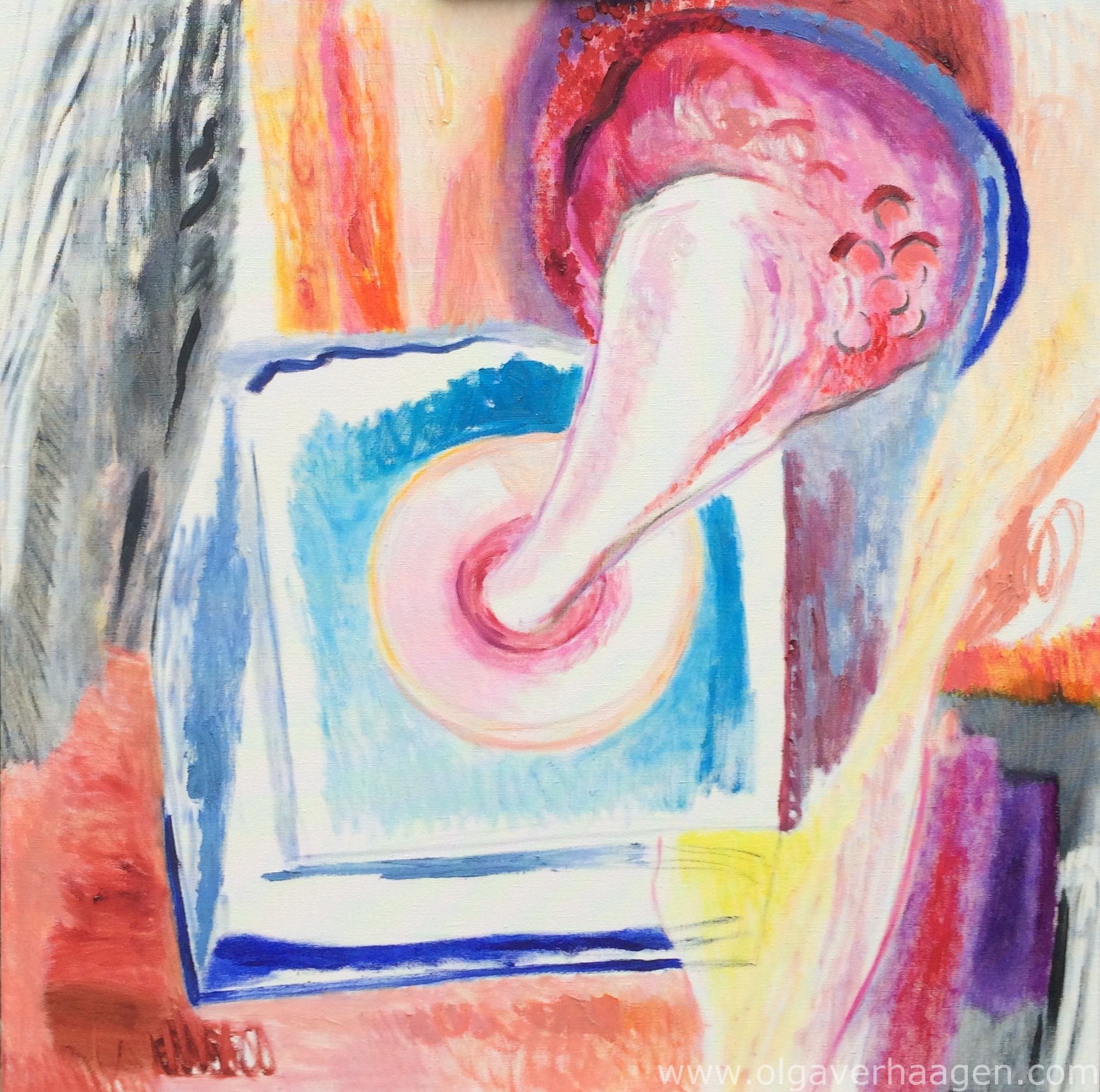 Afmeting schilderij: 80 x 80 cm.